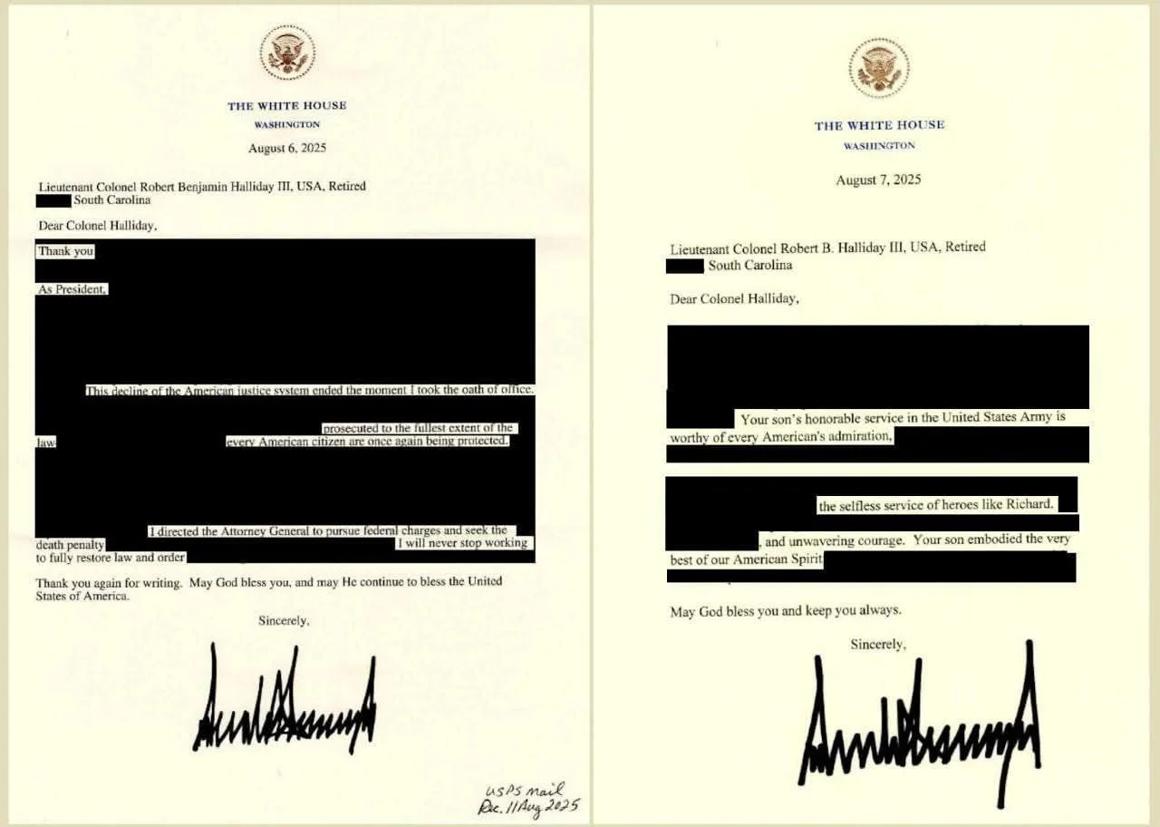 “Your son’s honorable service in the United States Army is worthy of every American’s admiration.” These are the words the Halliday family received from President Donald J. Trump on August 7, 2025 in response to the on-going investigation of their son’s murder case associated with the 2019 Walmart Mass Shooting.